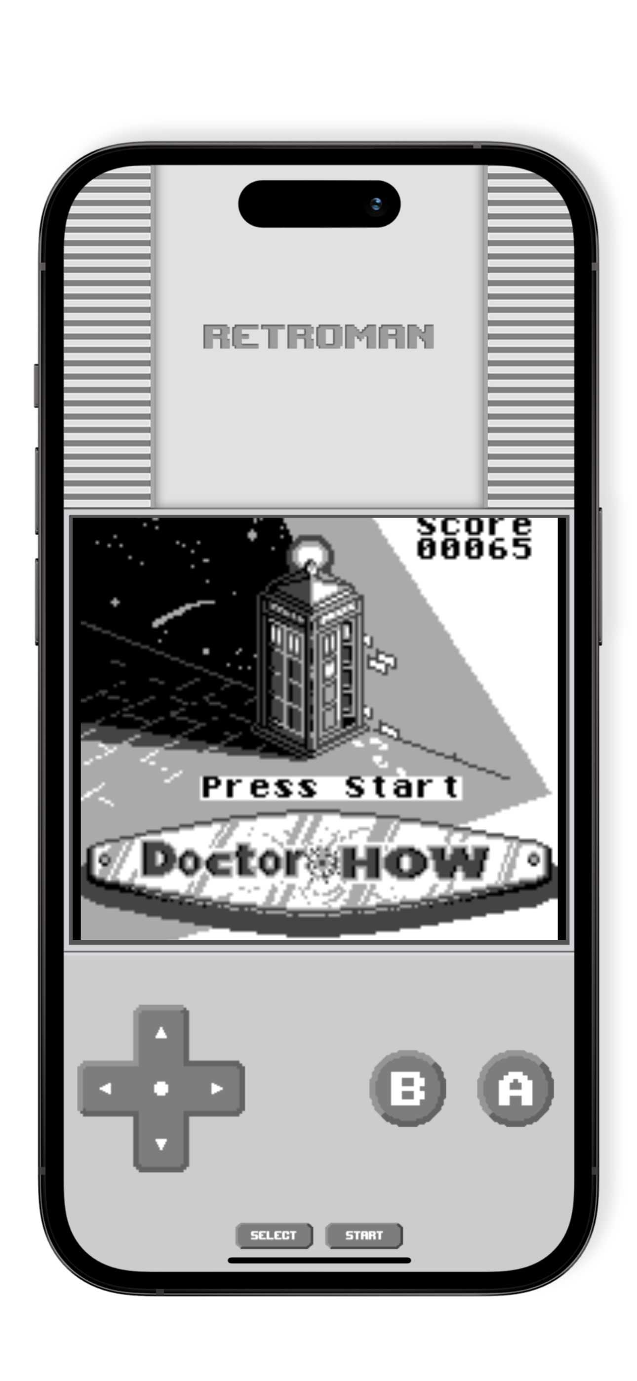 1. Browse and find legal Game Boy (.gb), Game Boy Advance (.gba) or NES (.nes) ROM files. 2. Save the ROM files to your device in the Files app. 3. Open Retroman and browse to locate the saved ROM files, then tap on the game you want to load. Alternatively, use the "Open In" feature to load ROMs directly into Retroman from other iOS apps.